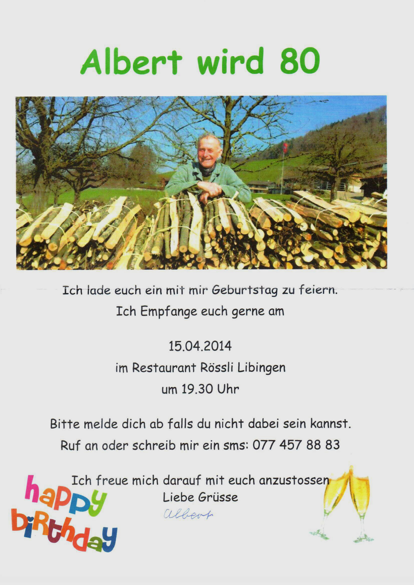 Walter Grob, unser Aktiv- und Ehrenmitglied konnte im Januar seinen 80. Geburtstag feiern. Wir MGLer und die Angehörigen wurden eingeladen, das Fest mit ihm an Auffahrt nachzuholen.
